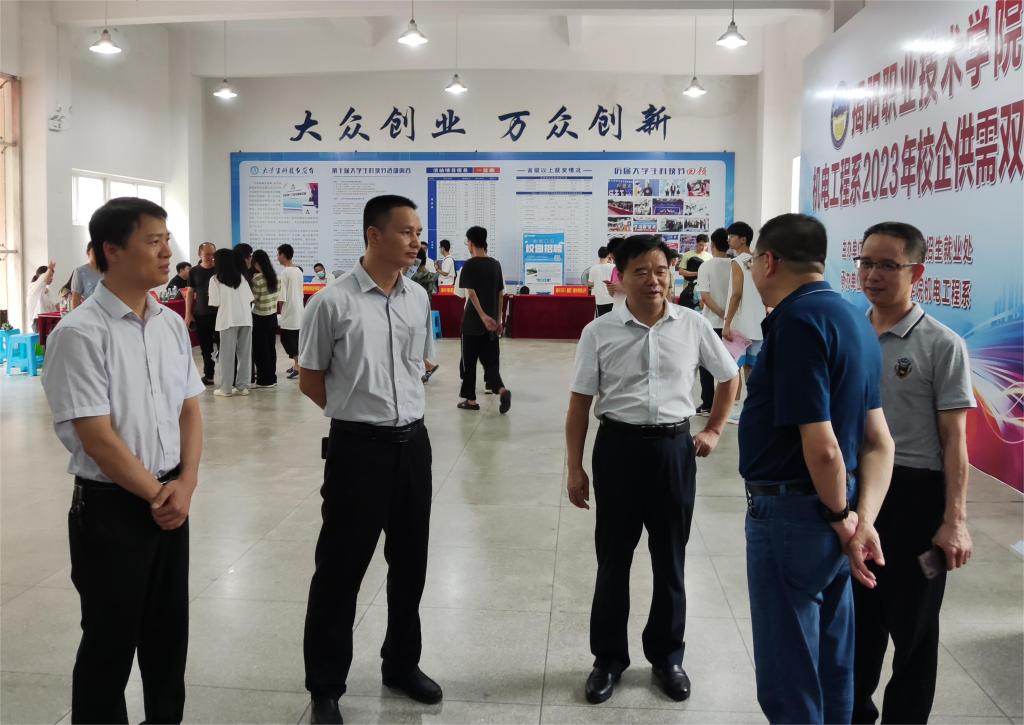 学校对本次机电专场供需双选会高度重视,院长罗恢远、副院长李桂鑫、教务处处长李镇伟、招生就业处处长向亚林等领导亲临现场指导工作,热烈欢迎前来招聘的企业,同时与各个企业的参会人员进行亲切交流,了解企业岗位设置和人才需求、企业对毕业生职业素养和技术技能等要求,为我系精准对接企业、推进产教融合教学改革准确把脉,提出很好的建设性意见,同时也希望合作企业能提供更多优质岗位,吸纳更多毕业生到企业工作,为学校发展注入创新活力。