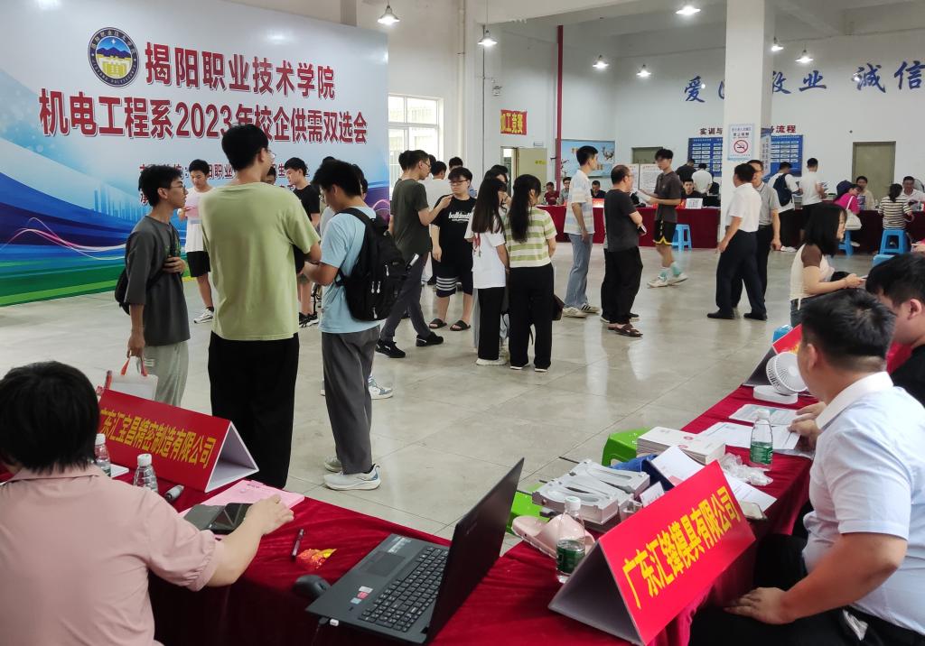为深入学习贯彻党的二十大精神,全面落实《广东省教育厅2023年学生就业创业工作要点》等文件精神,积极推进学校“2+0.5+0.5”产教融合改革工作,促进高校毕业生高质量就业,6月20日下午365官网机电工程系联合招生就业处,在实训楼B幢一楼成功举办“beat365中国唯一官方网站2023年机电专场供需双选会”。