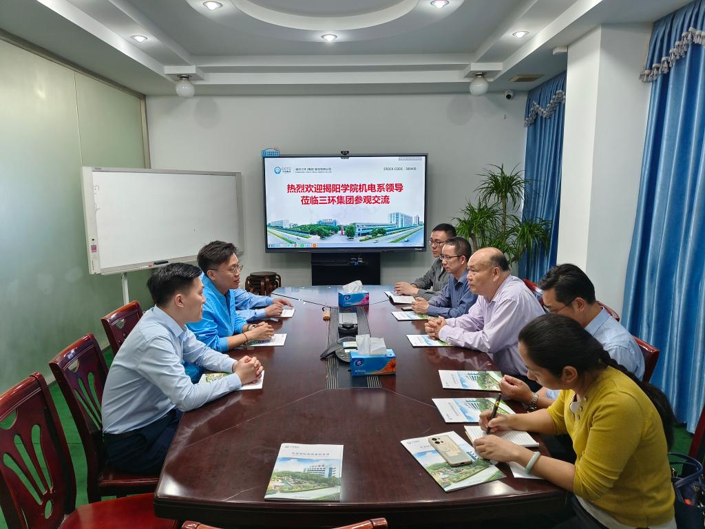 4月25日,机电系孙培明主任一行6人到潮州三环(集团)股份有限公司调研,洽谈校企合作事宜。公司人事部经理郑桐飞、人力资源经理郑培潮、事业部经理郑杰等公司领导参加本次调研与交流活动。